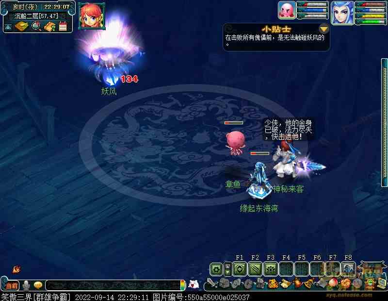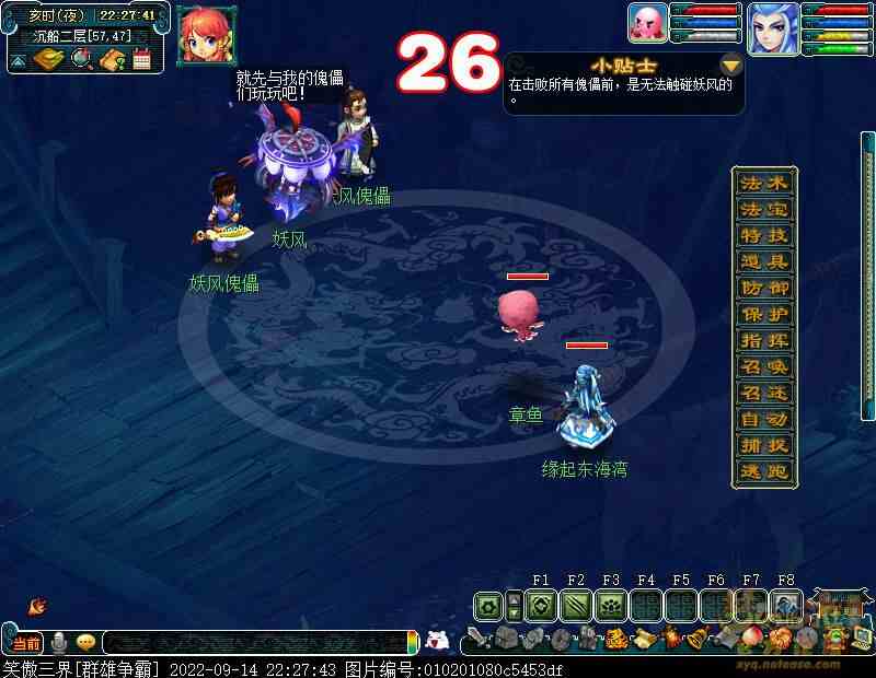 ②小怪(妖风傀儡下)——门派DT,使用法术-横扫千军、后发制人等(伤害一般)。