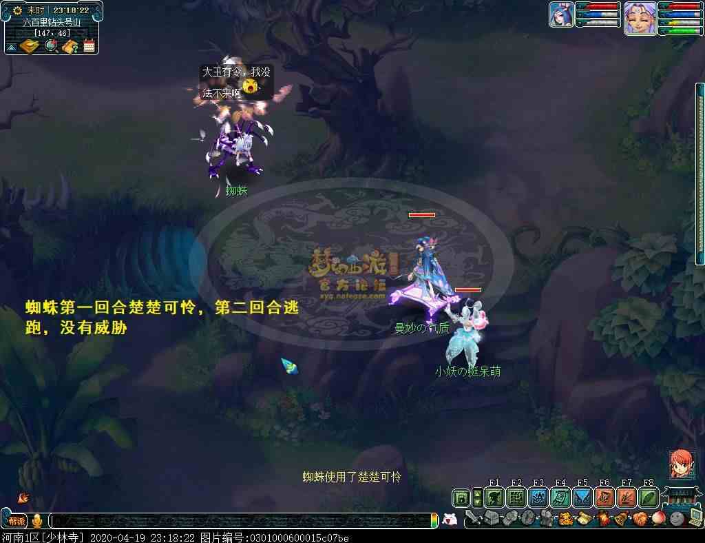 蜘蛛第一回合使用楚楚可怜,第二回合逃跑,没有威胁。