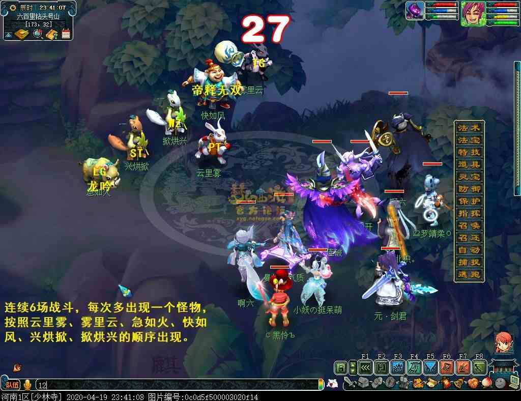 连续6场战斗,每次多出现一个怪物,按照云里雾、雾里云、急如火、快如风、兴烘掀、掀烘兴的顺序出现。