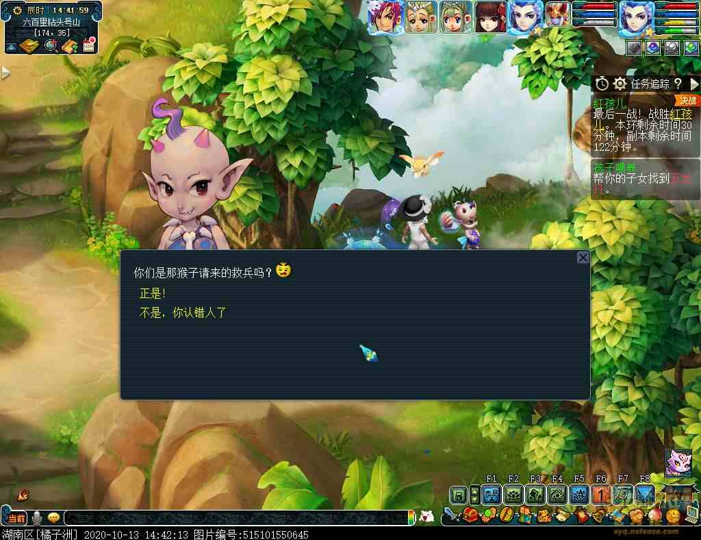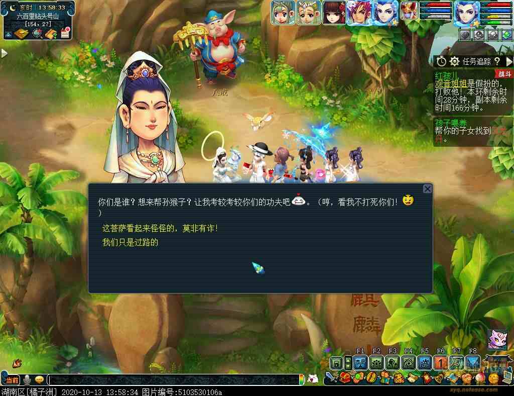 战斗结束后,团长点击观音姐姐送给红孩儿帖子,注意如果要点泡泡的话,只能选第二个。