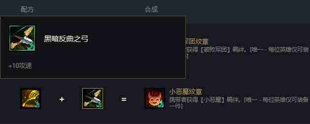 小恶魔徽章需要金铲铲和反曲之弓,其中(in)两个装备至少需要一个黑暗(an)装备才可以合成,否则就会(jiuhui)合成征服者的徽章。
