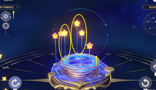 第一步:升高内圈,并将内圈三个星星旋转至罗盘上方偏左直至点亮;