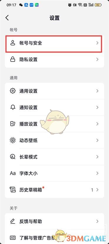 3、來到设置的頁面点击【賬號与安全(Safety)】;