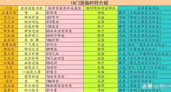 梦幻西游临时符有哪些