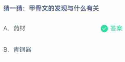 此次小编给大家分享的猜一猜:甲骨文的发现与什么有关 猜一猜:甲骨文的发现与什么有关药材青铜器相关内容大全,更多文章相关内容,请关注小编以获取第一时间的资讯更新信息。