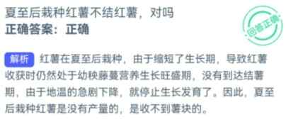 夏至后栽种红薯不结红薯,对吗(夏至后栽种红薯不结红薯对吗蚂蚁新村):网友觉得万物之自然规律,时节不同,夏至后种植红薯能够栽种的农作物也不应相同,蚂蚁新村也(ye)不也(ye)不月25日每日一题考到了红薯能不能在夏至后栽种,下面的内容喜欢可以了解一下。