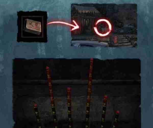 10、再回到(back to)二爷爷那里 来到左边的祭坛前 点击香炉 按照门缝里的香的高低 点燃香