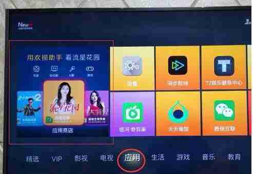 1、打開tcl网络电视,用遥控器点击(ji)电视下方的“应用”。