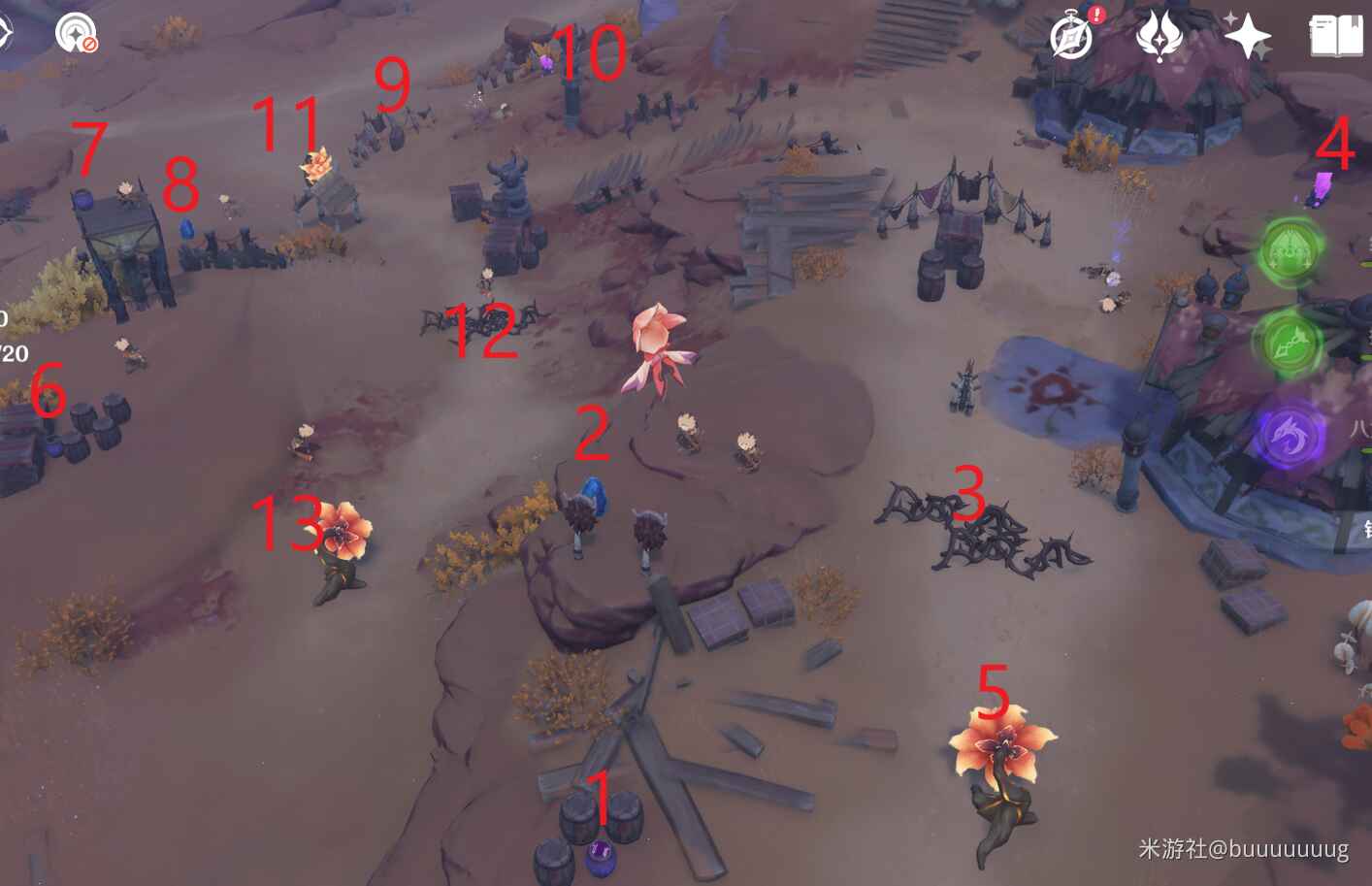 值得注意的是,6号点位可(ke)以等待徘徊的丘丘人走到附近(fujin)再引爆。并且我试过了,是可(ke)以同时炸到两个丘丘人的,但不建(jian)议(yi),因為比(bi)较考验时(shi)机。