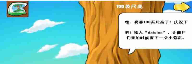 会告诉你:“嘿,我都100英尺高了!庆祝①芐吧!输入“daisies”,让僵尸们死的时候留下一朵小菊花”。输入后你就(jiu)会发现僵尸死后都会在原地留下几朵菊花。
