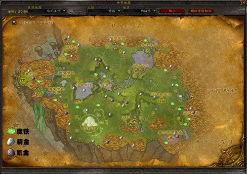 1.从泰罗卡森林进入纳格兰,基尔索罗堡垒内有氪金,精金和魔铁格一个点;由于氪金是全地圖随机刷的,因此之在这里列出小编曾经挖到过或者看到过的矿点。