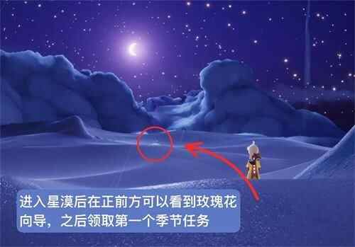 进入(Enter)星漠后在正前方可以看(kan)到(dao)玫瑰花向导,之后领取第一个季节任务