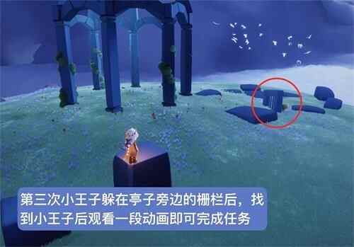 第三次小王子躲在亭子旁边的栅栏后,找(zhao)到(dao)小王子后观看(to watch)一段动画即可(jike)完成任务