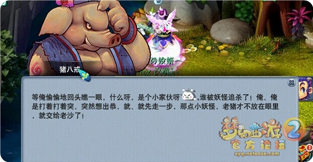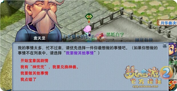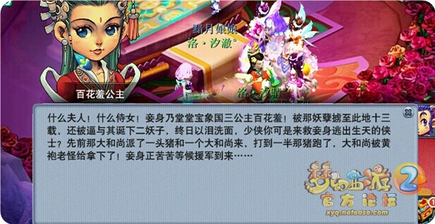 【剧情简单流程】:袁天罡→太白金星→守门天将→星官(战斗,无经验奖(jiang)励)→太白金星→宝象国国王→猪八戒→小妖→混沌兽(战斗,无经验奖(jiang)励)→混沌兽→太白金星→黄袍老怪(战斗,得500000经验)→百花羞公主→笼子里的猛虎→白马(单人战斗,无经验奖(jiang)励)→小白龙→太白金星→月老→百花羞公主→狂豹(战斗,得800000经验)→黄袍老怪(战斗,得1200000经验)→狂豹。