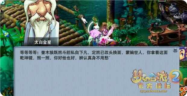 和被变成猛虎的玄奘法师聊天以后,得知小白龙还在和黄袍怪僵持着。于是去宝象国找到白马化身的小白龙,这里直接进入单人战斗。战斗结束后,小白龙去花果山找孙悟空来帮忙,但是黄袍怪还紧随其后。只能先在宝象国把小白龙找到。然后再去找太白金星去问清楚百花羞公主和奎木狼的关系,原来是糊涂的月老牵错线了。找到月老,这老头却说红线早已断,只不过百花羞好奎木狼的两只玩偶被人抢走了。无奈还是再去百花羞那里问问。