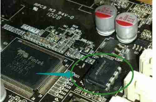 2、等BIOS对应文件(jian)下载完毕之后,接着使用小镊子将电脑主板上需要刷新的BIOS取下来。注意拿BIOS时必须是断电状态,如图所示,将这个(ge)很小的BIOS取下来,操作利索些。