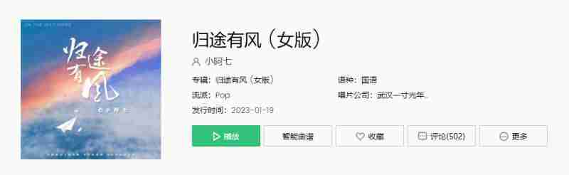 《抖音》归途有风歌曲分享