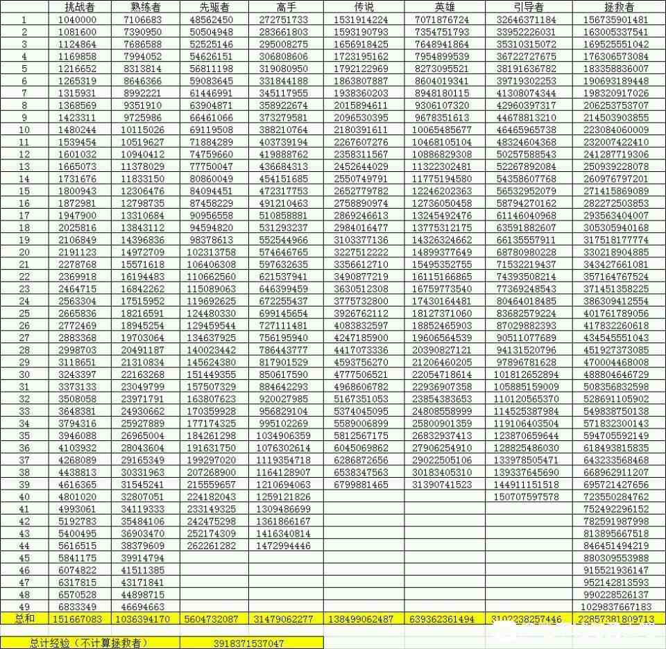 各等级所(suo)需(xu)经验如图