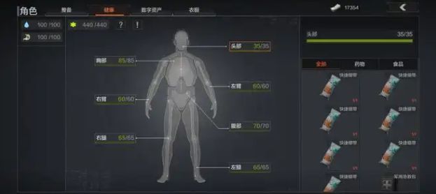 当口袋和弹挂中有医疗物资时我们可以快捷使用,但这样无法指定部位优先治疗,如(ru)果(guo)遇到医疗物资有限,身体又多处损坏的情况,可以打开背包后切换到健康页面针对各个部位进行治疗,比如先治疗腿部损坏,恢复移动能力。
