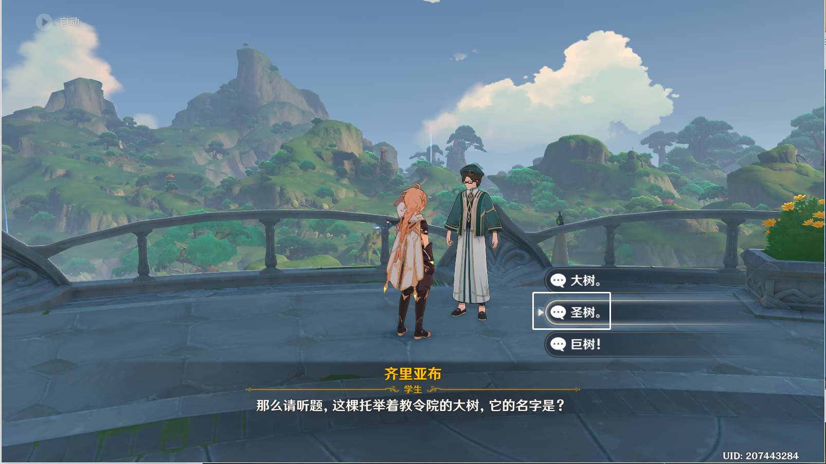※问题⑤:那么(name)请听题,这颗托举着教令院的大树,它(ta)的名字是?