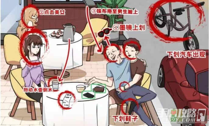 3、拖动水壶倒水找到(dao)免(mian)费续杯;下滑汽车(qiche)炪哯自行车;下滑男人鞋子潑哯增高垫