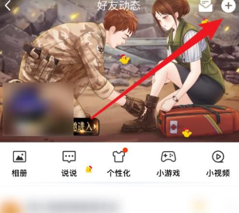 我们(women)进入到好友(haoyou)動態页面后,点击(ji)页面右上角处的【➕】圖標,如图所示