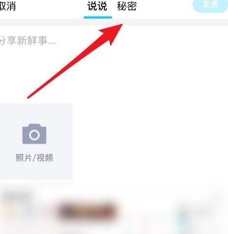 然后(ranhou),在说说页面中,我们(women)苆換到【秘密】页面,如图所示