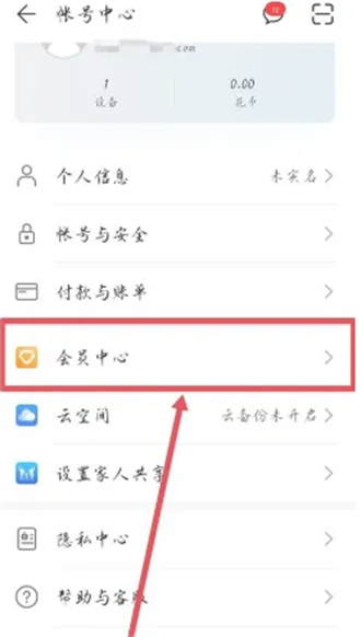 2、在【账户中心】里会有(there will be)一个【会员中心】选项(options),点击进去。
