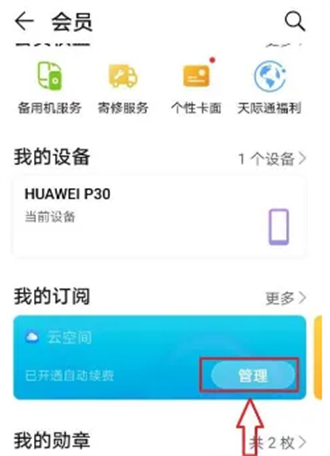 3、在【会员中心】里会有(there will be)一个【云空间】选项(options),云空间右下角的【管理】。