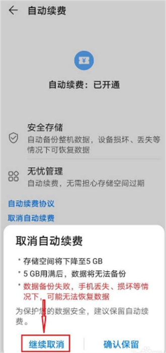 7、然(ran)后继(ji)续(xu)点击【继(ji)续(xu)取消】的选项(options)即可取消自动续费。