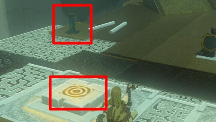 2、将前面的柱子移动(yidong)到在此的机关(guan)将其压住。