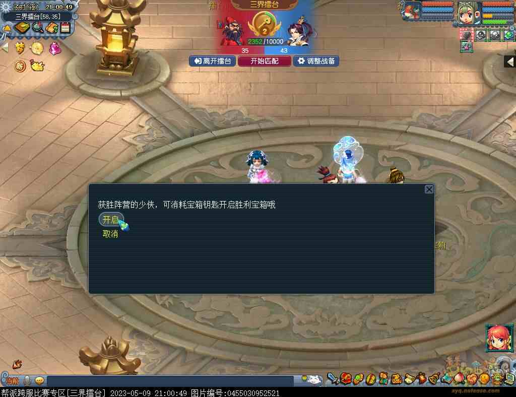 21:00-22:00大乱斗结束后,可在三界擂台比武场内开启宝箱