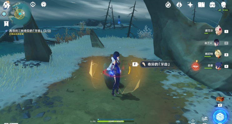 13、击败丘丘王,破坏透明防护罩,拾取牙齿。
