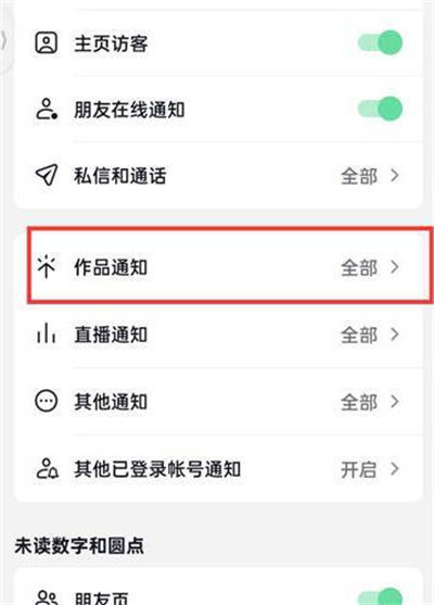 进(jin)入通知设置之後,找到(turn up)作(zuo)品(pin)通知的功能(gongneng),接着我(wo)们找到(turn up)热点资讯,点(dian)击(ji)右侧的滑块关闭即(ji)可(ke)。
