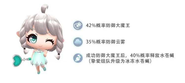 在与挚爱组队实行同局游戏时,成功防御大魔王后释放的水苍蝇还会升级成冰冻水苍蝇。除此之外,见习丘比特还有着出其不意的联动属性:噻車的防魔技能,也可以触发丘比特的攻击,让轻视丘比特的敌(di)人尝点苦头吧!