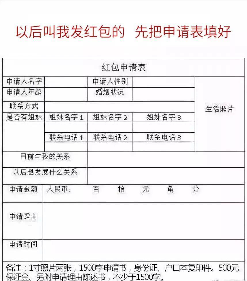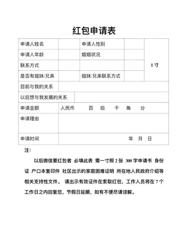 红包申请表图片