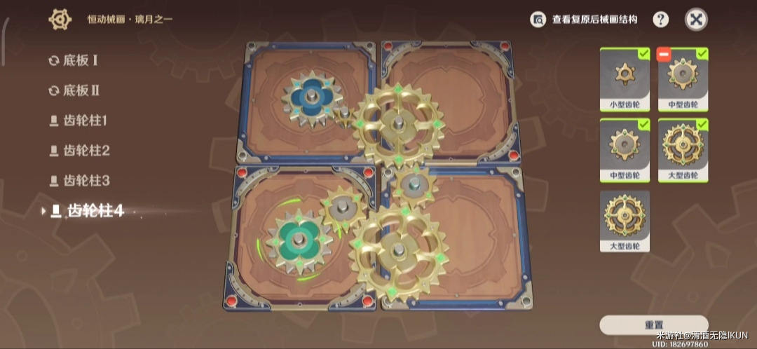 6、将「中型齿轮」放在(zai)齿轮柱4上(shang)面。