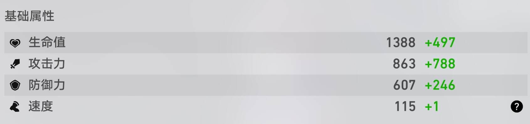 基础属性(Attributes)分为基础数值(黑字)与额外数值(绿字),角色自身以及光锥提供的属性(Attributes)视为基础数值,而通过各类词条获得的加成则是基于基础数值获得的额外数值。