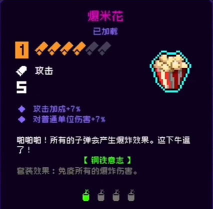 爆米花的效果(xiaoguo)是可以让所有的子弹(zidan)都产生爆炸(baozha)效果(xiaoguo)。