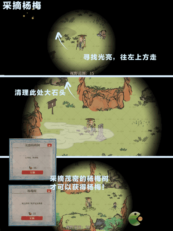 1、杨梅树使命:视野范围(scope)缩小后,可与石碑交互或点击“回(hui)到起点”,恢复(huifu)初始视野范围(scope),黑色區域闪着的黄色光点是石碑。