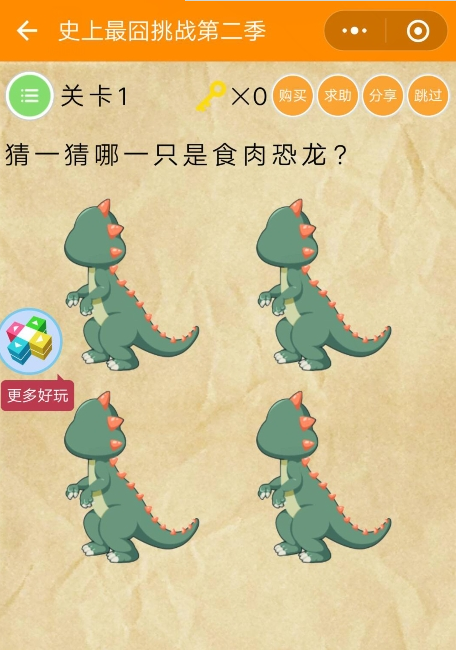 为什么说是第四只呢,你用手指将每个恐龙都点击两下,或者多下点击,谁张着牙齿就是哪只了