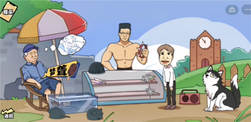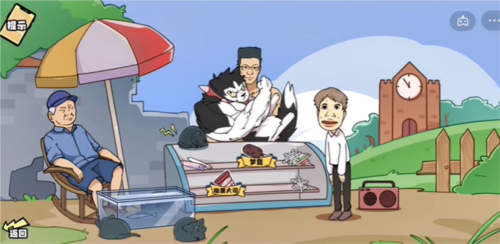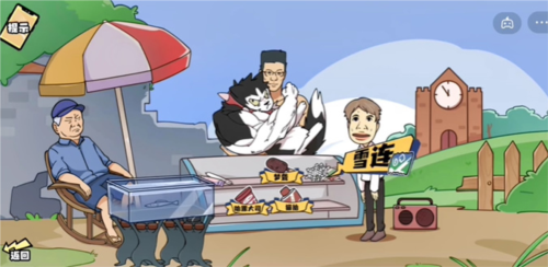 2,首先下图点击云朵需点击俩次变成龙,再看乘凉的大爷在睡觉,将变成龙的云朵放入大爷的身上,就会出现(Appear)第一个雪糕名(ming)称(cheng)梦聋。