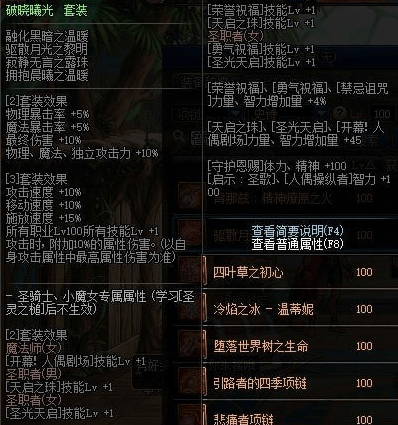 破晓曦光套装属性