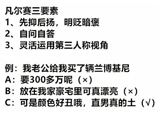 所以,形容一个人是“凡尔赛集大成者”,就是指的这(zhe)个人写的“凡尔赛文学”让人看起来会“沉浸”其中,非常的爽、过瘾(enjoyable),有点类似于女生沉浸在“霸道总裁”系列的文学作品中一样(yiyang)。“凡尔赛十级学者”“凡尔赛文学家”也是指的在朋友圈、微博上经常发表一些符合“凡尔赛文”精神的一类人。不过一定要值得注意的是,凡尔赛文学跟普(pu)通的装B是完全不同的,普(pu)通的装B是简单直接的,是直接说结果的一种炫耀方(fang)式;而凡尔赛文学则是通过对于过程的描述,来表达想要炫耀的结果。