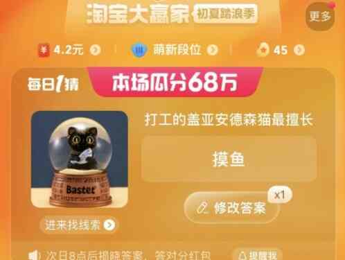 淘宝每(mei)日一猜6.25今日答案趧朩:打工的盖亚安德森猫最擅长?
