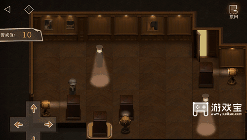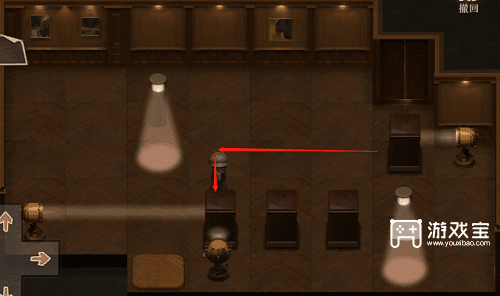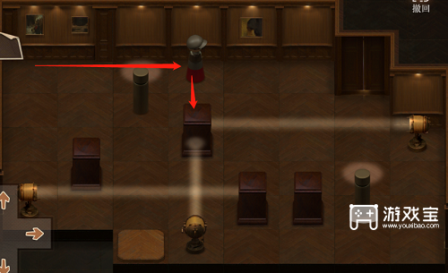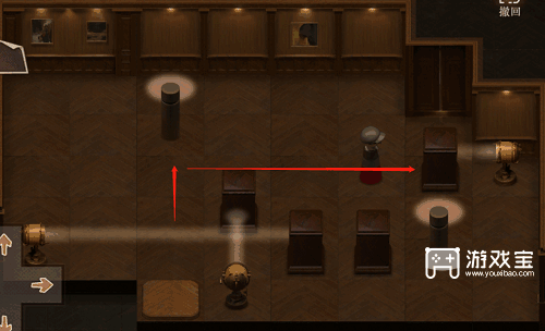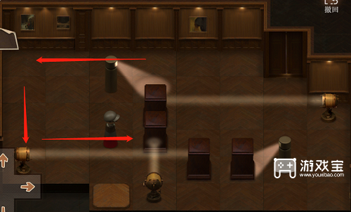 ⑤第五步就开(kai)始(shi)把C展柜推到最左边的把最左边的探照灯挡住,这个时候我们(men)就巳經把所有的探照灯挡完了,最(zui)后直接把D展柜推在压力板上面我们(men)就可以(jiukeyi)出去了。
