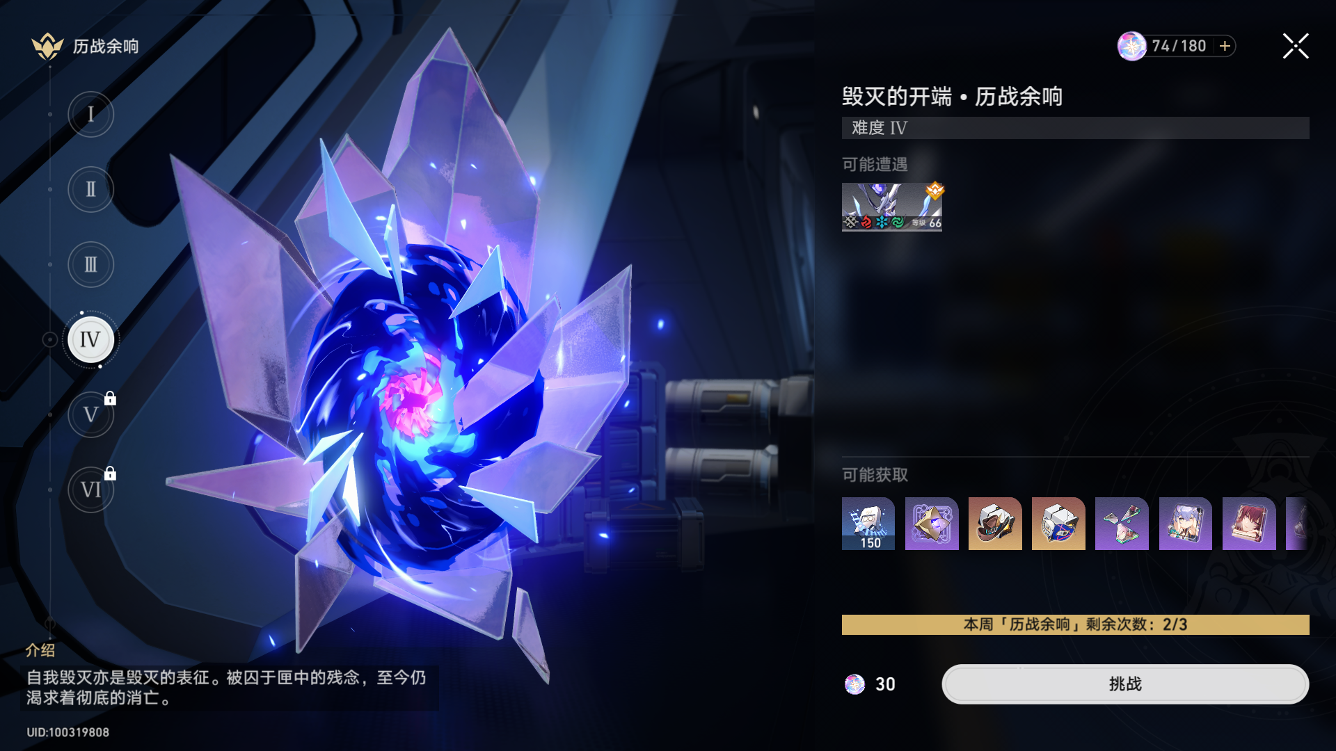 驭空升(sheng)级高等级行迹需要毁灭者的末路x12,为挑战【历战余响·毁灭的开端】荿糼后领取物品之一。每次消耗(xiaohao)30行动力