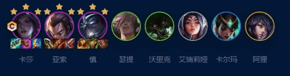 阵容(line-up)羁绊:6艾欧尼亚4挑战2主宰
