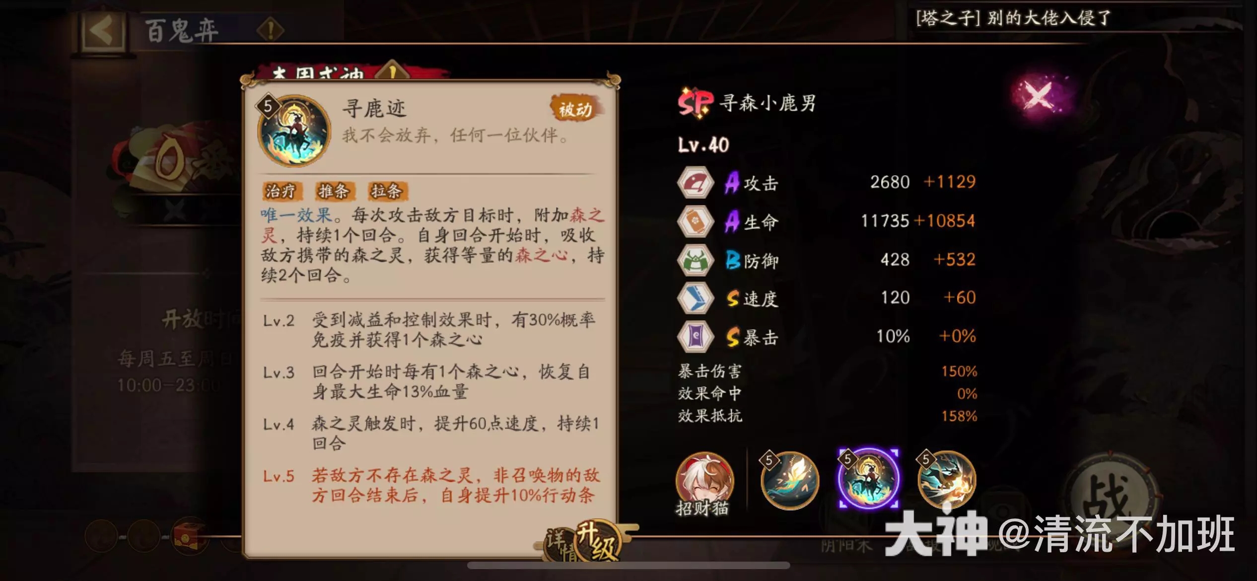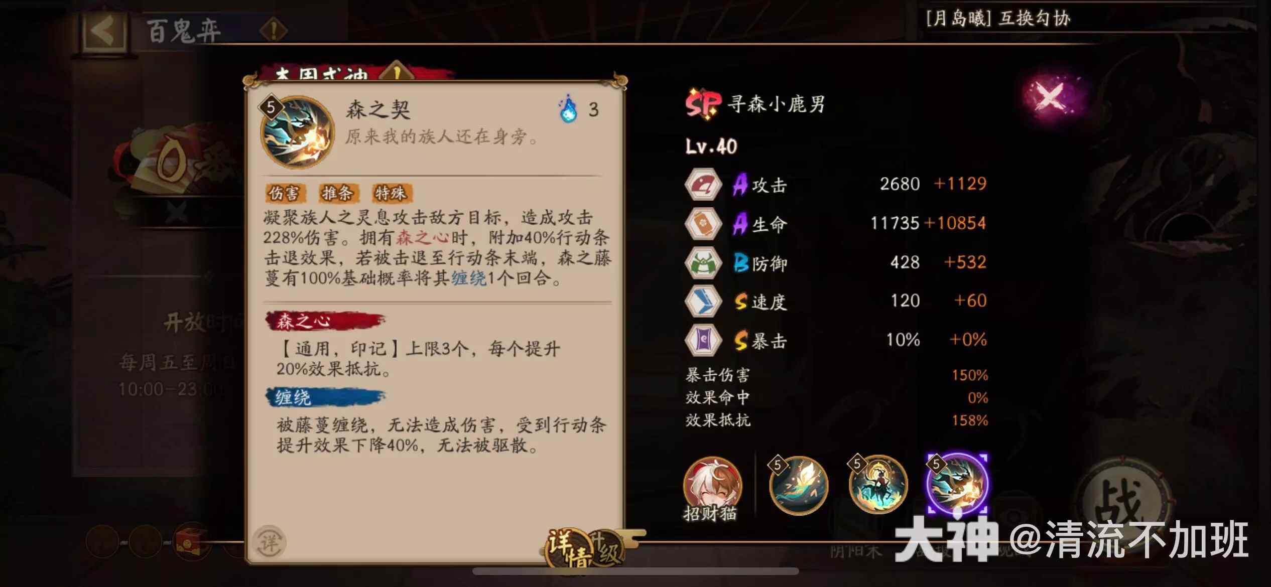 1、sp寻森小鹿男的技能设(she)计(ji)很有意(yi)思(si),感觉对须佐、荒、季、sp红叶等等主流输出都有挺强的克制作用,攻击对方(duifang)单位就可(ke)以(yi)附加[森之灵],附加上森之灵的单位会被偷攻击和推条