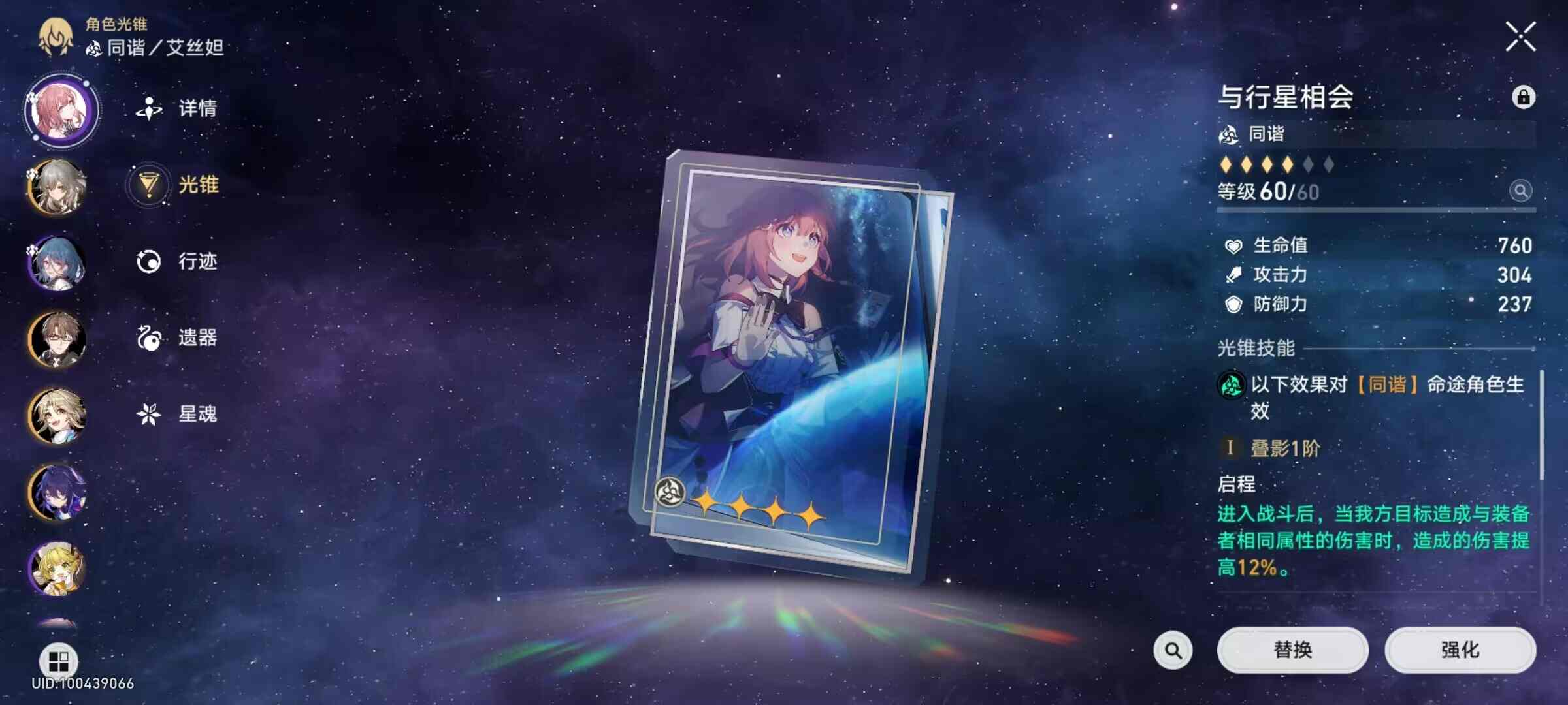 可以看到e的伤害为576现(xian)在将艾丝妲的的光锥更(geng)换(huan)为非同谐光锥